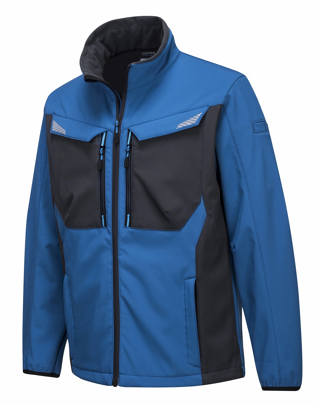 Softshellová bunda, která je odolná proti větru, je voděodolná s prodyšnou membránou s přidaným mikrovláknem. Chytré funkce zahrnují technologii Ezee Zip, předtvarované lokty, reflexní ozdoby a více kapes.