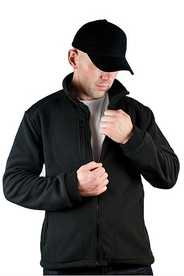 Fleecová mikina zapínaná ve předu na zip. Dvě kapsy. Kapsička na prsu zavíraní na zip. Na krku, ramenou, loktech je zesílena nepromokavou látkou ripstop.