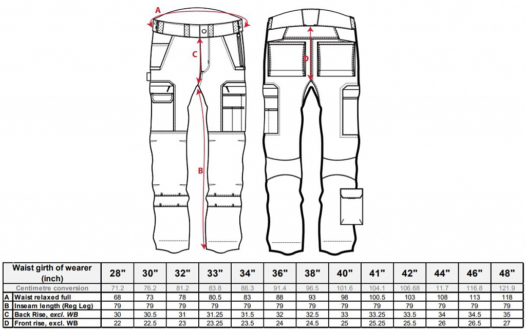 Tabulka Velikostí: Kalhoty KX3 Ripstop