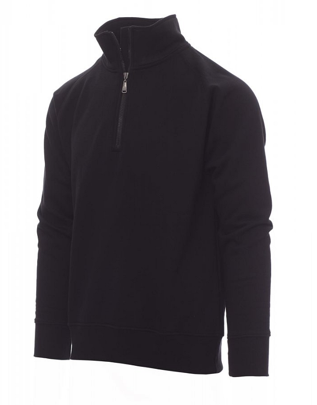 Pánská mikina s barevně sladěným plastovým polozipem s kovovým jezdcem, raglánové rukávy, manžety a pas s elastickým žebrováním, zesílené švy.