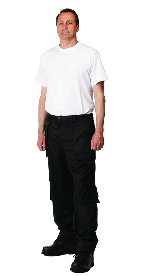 • pevné praktické kalhoty s mnoha funkčními kapsami – pocketstyle;