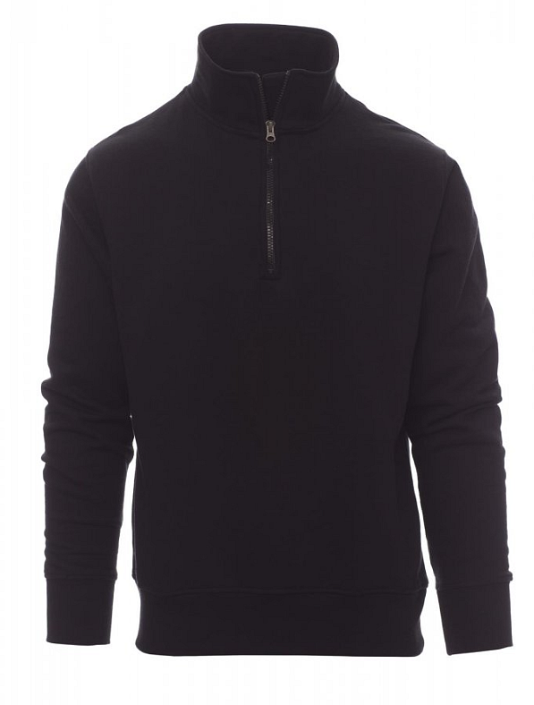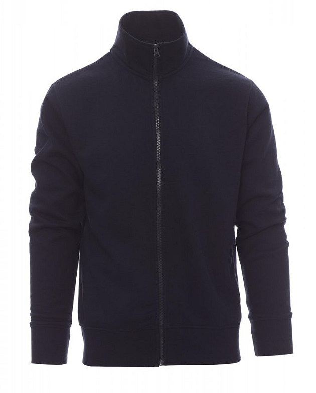 Pánská mikina s barevně sladěným plastovým skrytým celozipem s jedním kovovým jezdcem, všívané rukávy, manžety a pas s elastickým žebrováním, zesílené švy, vyztužená páska sladěné barvy na vnitřní straně krku.