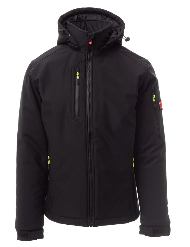 WP 8000 mm H₂O, WVT 5000 g/m² 24h. Pánský zateplený softshell, zapínání na zip SBS s kovovým jezdcem „semi-auto lock“ a přizpůsobeným taháčkem. Odnímatelná kapuce se stahovací šňůrkou. Vnitřní límec s flísovými bočními prvky. Reflexní pruhy na zádech a zadní straně kapuce. Elastické stahovací manžety na suchý zip. Dvě boční kapsy na zip, jedna kapsa na hrudi s voděodolným zipem a jedna kapsa na levé paži s integrovaným očkem na pero na zip. Fluorescentní taháčky. Jedna vnitřní prostřižená kapsa na suchý zip. Spodní část stažitelná pomocí přizpůsobených zarážek.