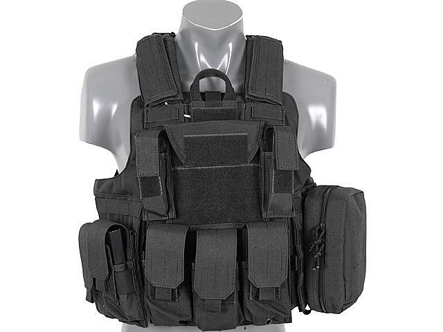 V sestavě vesty se nachází: sumky na zásobníky do M4/M16, kapsa na vysílačku, tzv. admin pouch, plochou kapsu krytou zipem ve kt. je ukryta např. mapa, pokrytí zipem umožňuje připnutí identifikačních plaket, nebo identifikace ultrafialového systému můj - tvůj, či populárních morale patches, sumka na 2 pistolové zásobníky, sumka-lékárnička, uvnitř vybavena všitou gumou, za kt. lze zastrčit např obvazy, nebo léky.
