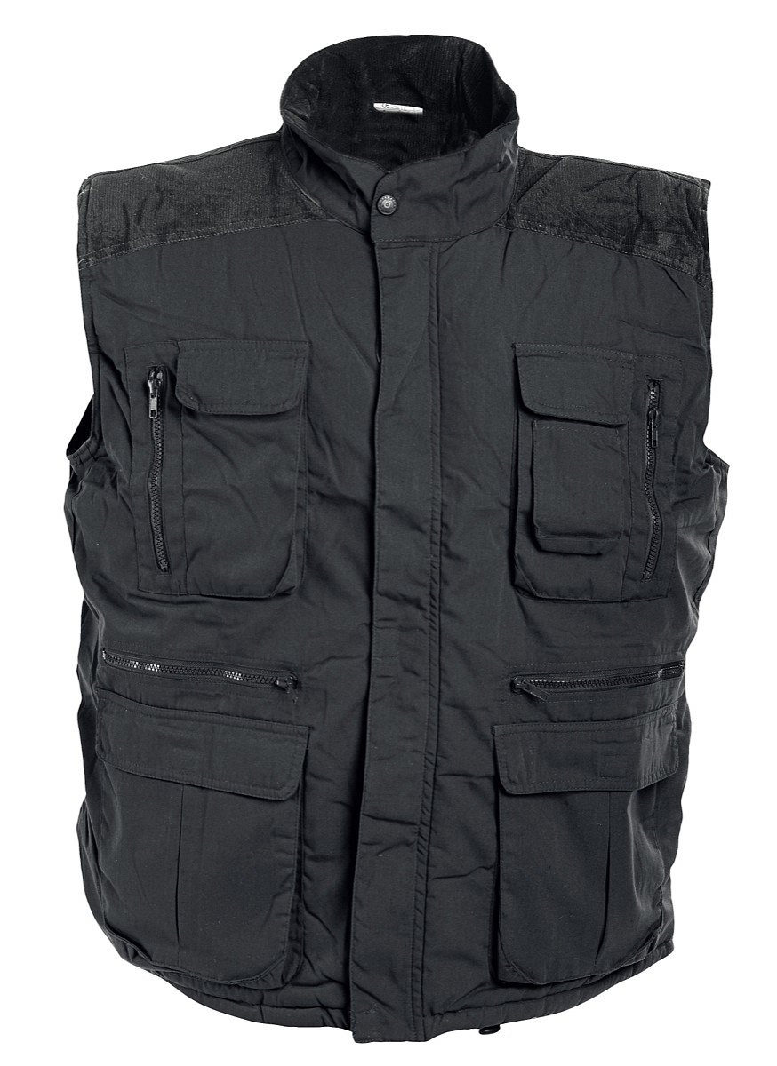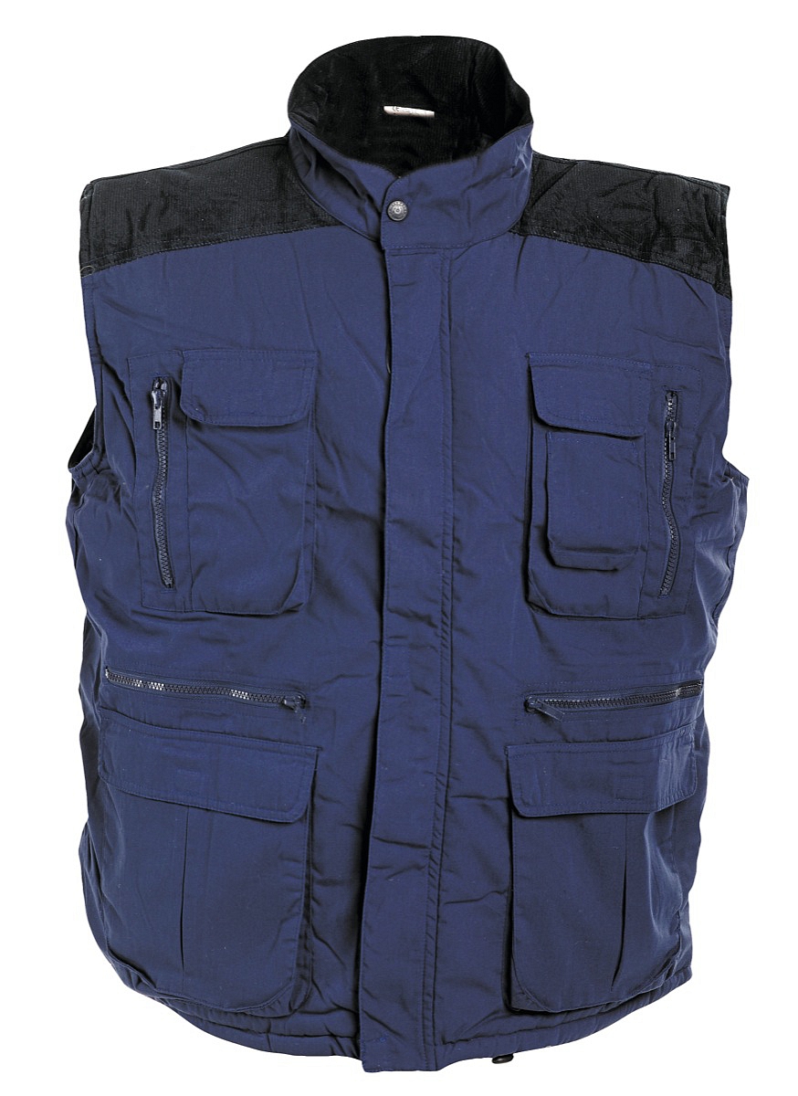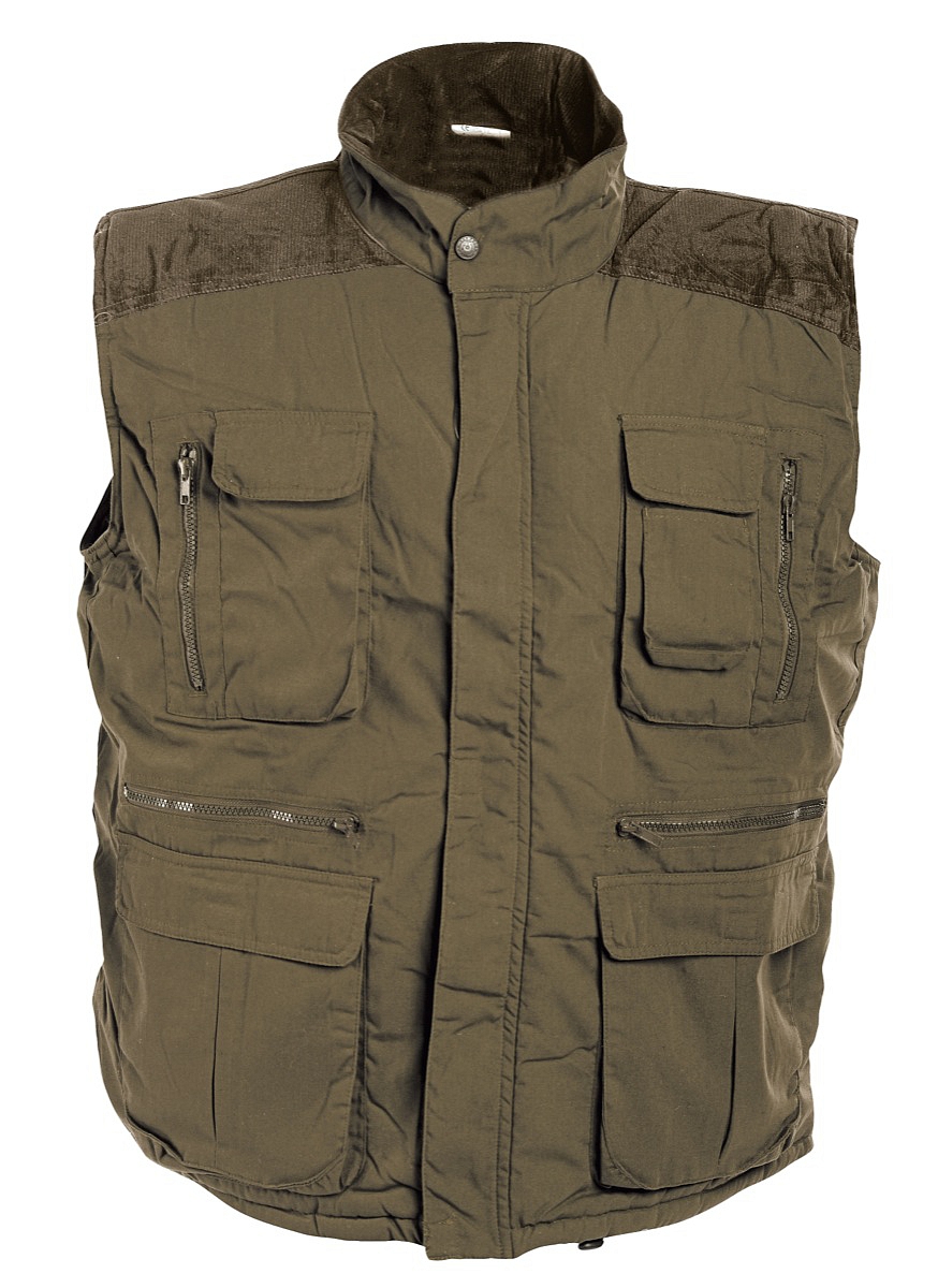 Vesta s manšestrovými nárameníky, polyester/bavlna, podšívka z nylonu, zateplení z polyesteru.