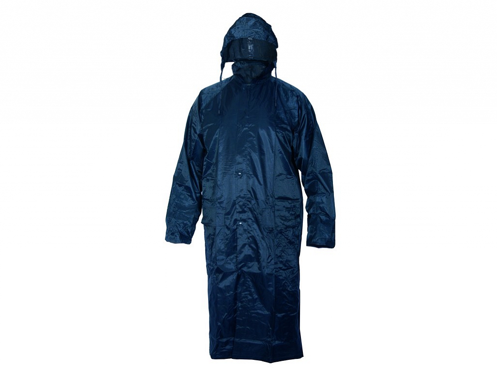 Voděodolný plášť, kapuce v límci, délka 120 cm, nižší hmotnost, v praktickém balení.
