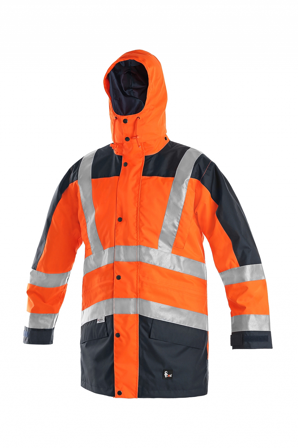 Pánská výstražná bunda 5 v 1 s odnímatelnou vnitřní bundou, odolná proti vodě a větru, 3M reflexní pruhy, lepené švy. Vnější bunda: 2 spodní kapsy s patkou, 2 náprsní kapsy, zip krytý légou zapínanou na druky, kapuce v límci, regulovatelné manžety na suchý zip. Možnost regulace velikosti v pase i v dolní části bundy. Vnitřní kapsy: na pravé straně kapsa na mobil, na levé straně větší kapsa na peněženku. Vnitřní bunda s odepínacími fleecovými rukávy, 2 boční kapsy kryté patkou na suchý zip, vnitřní kapsa na levé straně. Doporučené použití: stavebnictví, silničáři, řidiči, logistika, údržba, policie, záchranáři.