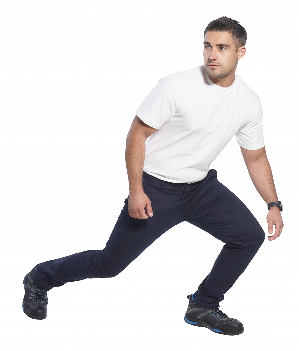Moderní štíhlý design z dynamické bavlněné strečové keprové tkaniny. Kalhoty nabízejí maximální pohodlí a volnost pohybu. Boční kapsy, vysoce odolné s dvojitým prošitím ve všech napěťových bodech.