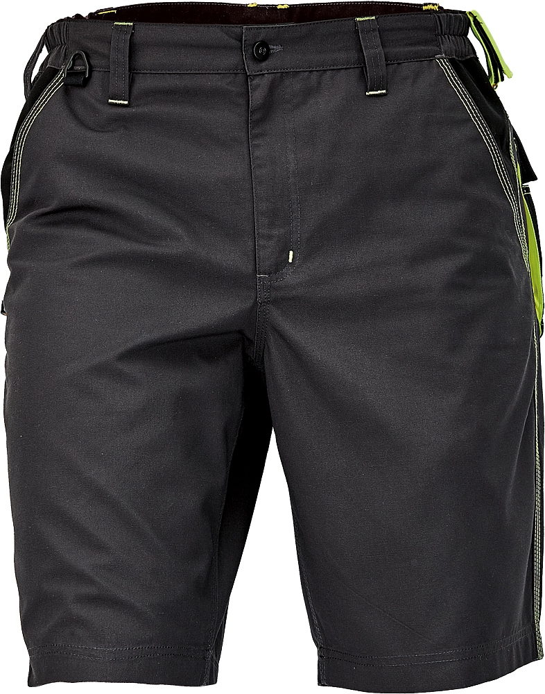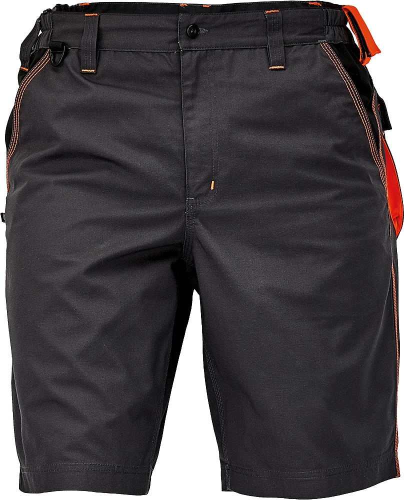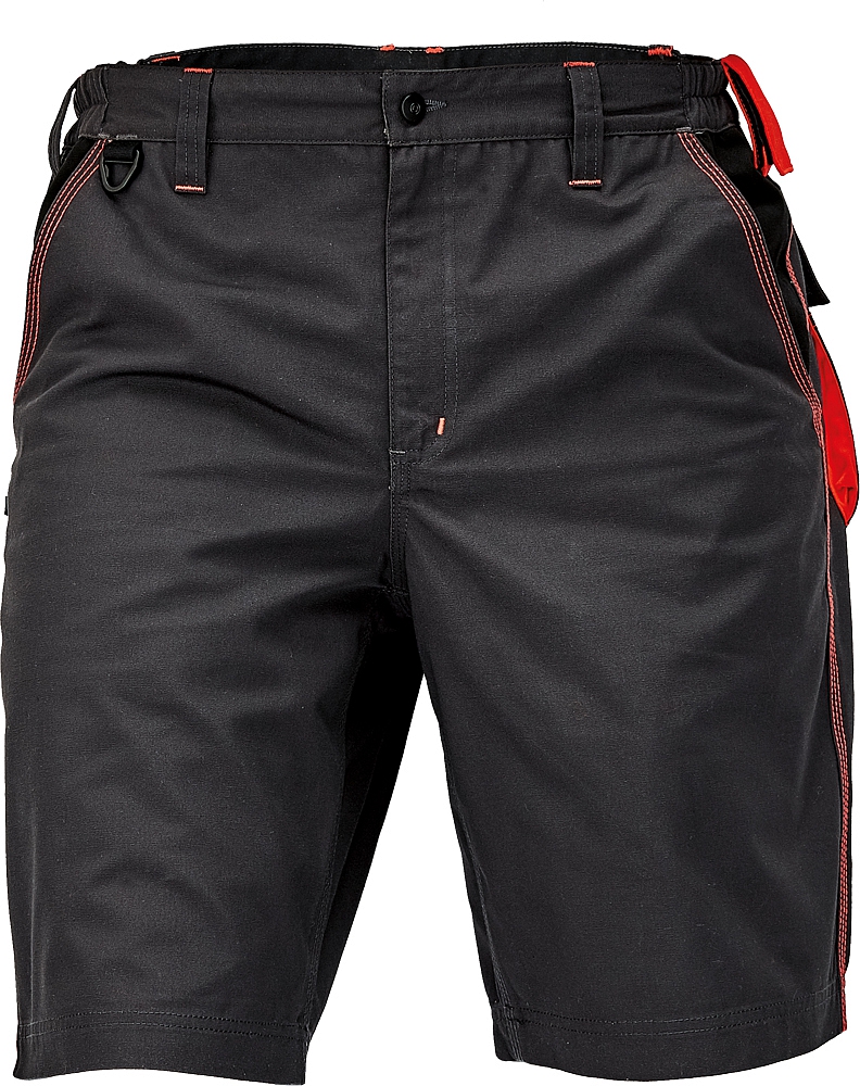 • pánské pracovní šortky s elastickým pásem • 2 postranní kapsy a 2 kapsy s patkou na zadním díle • poutko na nářadí v kontrastní barvě • D kroužek pro přichycení identifikační karty • dekorativní prošití v kontrastní hi-vis barvě, barevné kombinace: antracit-červená, antracit-oranžová, antracit-žlutá