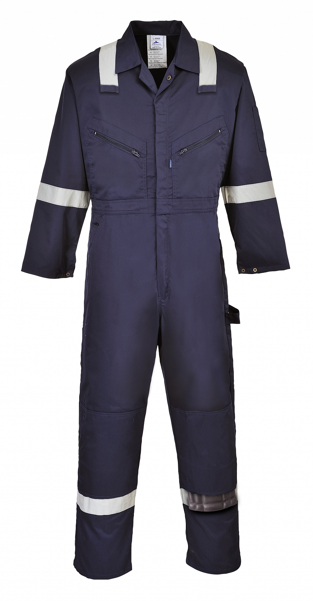 Bezpečná a pohodlná kombinéza s reflexními pruhy pro zvýšenou viditelnost. Kapsy na kolenní vložky, nastavitelné manžety na cvočky, se zádovými záhyby.