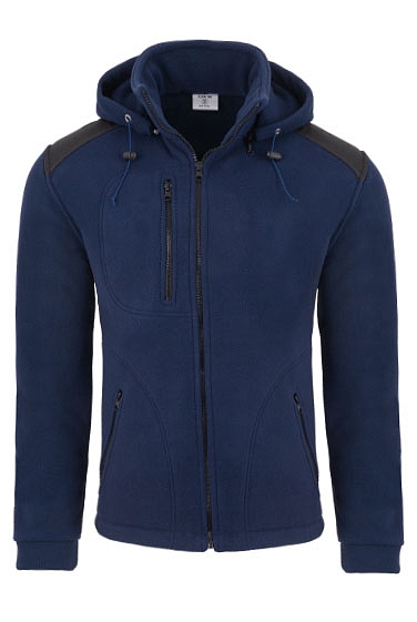 Fleecová mikina zapínaná ve předu na zip. Dvě kapsy. Kapsička na prsu zavíraní na zip. Na krku, ramenou, loktech je zesílena nepromokavou látkou ripstop.