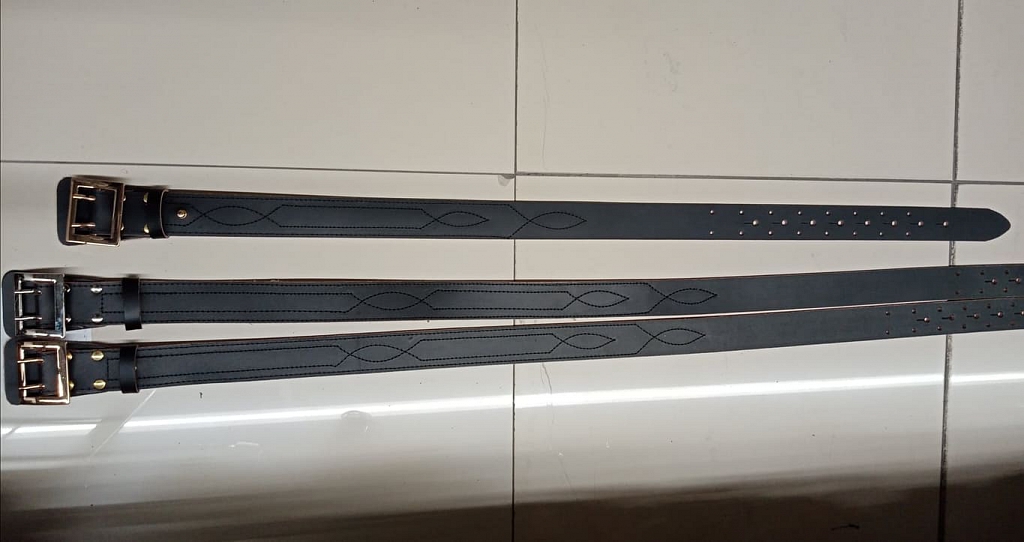 Pásek kožený, služební, střibrná spona klasická, šíře 4,5 cm, černý