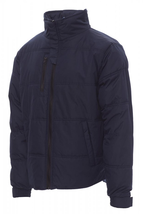 Pánská lehká bunda s 8mm plastovým zipem s kovovým jezdcem, kapuce v límci, stahovací manžety, dvě postranní kapsy na zip, jedna kapsa na hrudi. Vnitřek: zateplení, kontrastní mikroflísový materiál.