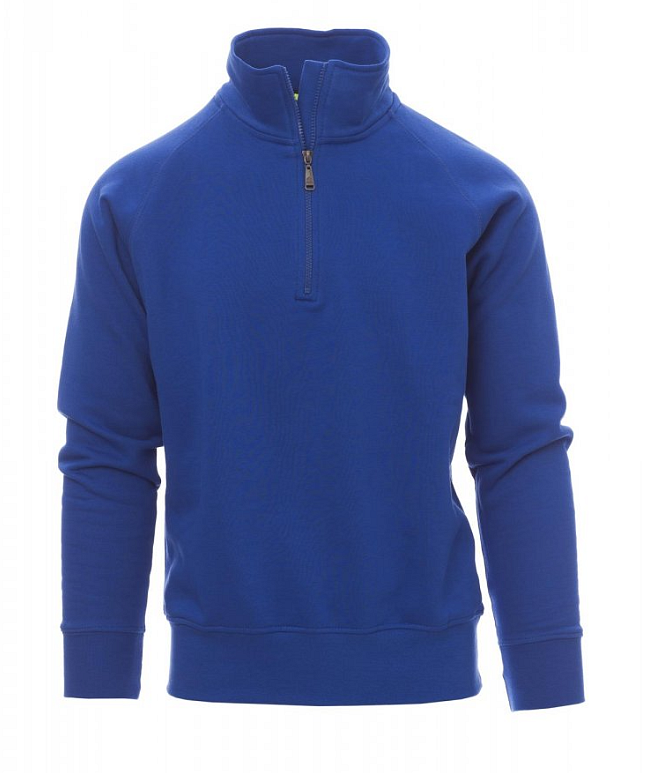 Pánská mikina s barevně sladěným plastovým polozipem s kovovým jezdcem, raglánové rukávy, manžety a pas s elastickým žebrováním, zesílené švy.