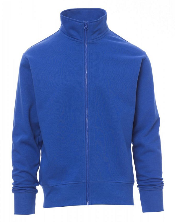 Pánská mikina s barevně sladěným plastovým skrytým celozipem s jedním kovovým jezdcem, všívané rukávy, manžety a pas s elastickým žebrováním, zesílené švy, vyztužená páska sladěné barvy na vnitřní straně krku.